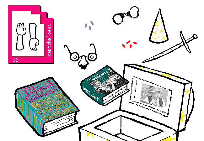 箱子裡藏了一連串滑稽而神秘的道具,每一樣在熟練的魔術師或狡猾的整人專家手上都是極具毀滅性的武器。