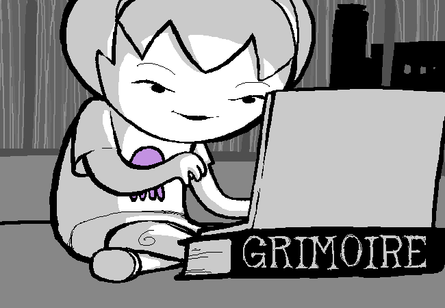 Rose:把筆電墊在魔導書上提高高度。