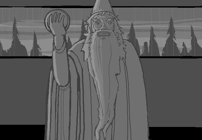 看看那神秘的目光。凝視那超然的清澈眼眸將喚起凡夫俗子的好奇心。注視著那莊嚴臉龐上歲月的犁溝所包藏的智慧,會讓你知道魔法所帶來的無盡歡喜。若是任何人如此幸運能瞥到他高興地目光閃爍或鬍鬚抽動,那此人便一生無憾了。