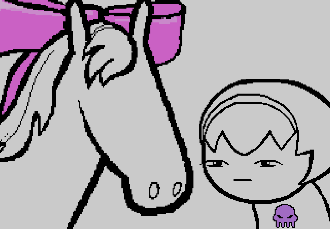 不過你還是很不情願的拍了拍那隻小馬的鼻子。