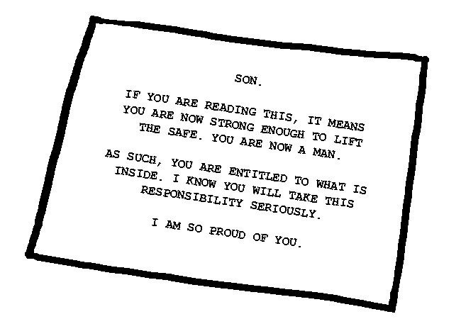 (如果你讀到這個,表示你已經夠強壯可以抬起保險箱了,你是個男人。)