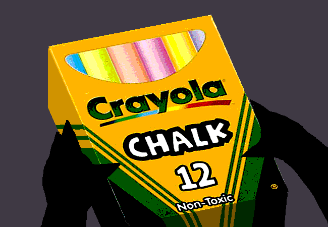 譯註: 把粉筆當成蠟筆的原因是品牌名"Crayola"與蠟筆的英文"Crayon"形似。
