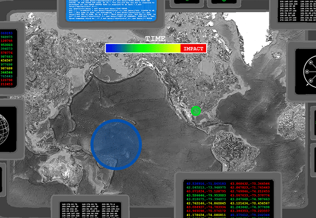 你放大地圖並且把篩選條件設為隕石尺寸。出現在列表頂部的是目前最大的兩顆。你只檢查它們的座標。