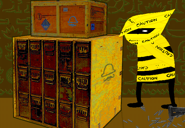 存放在板條箱中,你花了很多時間把它們從附近的沙堆裡挖掘出來然後拖回你的堡壘。你有各式各樣的軍火和彈藥供你使用。