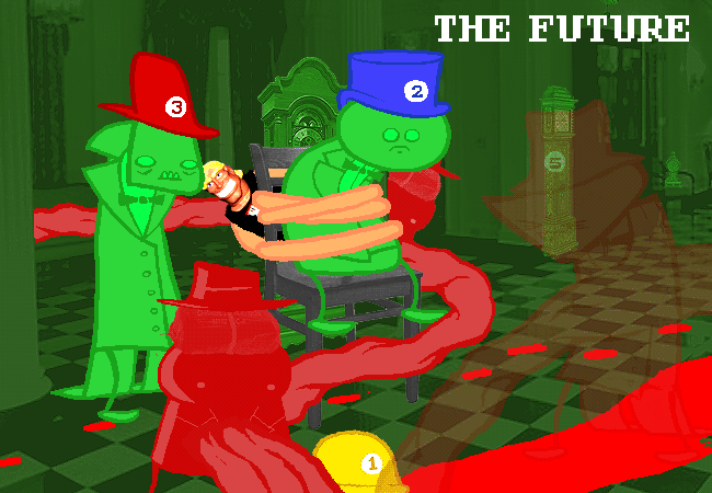 他發現他的同伴被一個充滿彈性雙手的橡膠小人綁住。但相較之下那玩意不怎麼噁心。