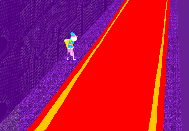 你轉到了某個地方然後發現了一個看起來特別堂皇的紅色地毯。你納悶這會通向哪裡呢。