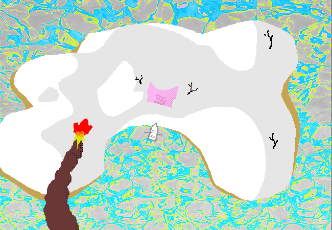 你探視著一艘停在下方島嶼岸邊的船,你很納悶是誰把這船划到海中央的。