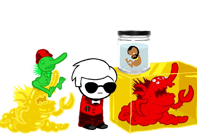 Dave:結合密封罐裡的胚胎和T先生玩偶。