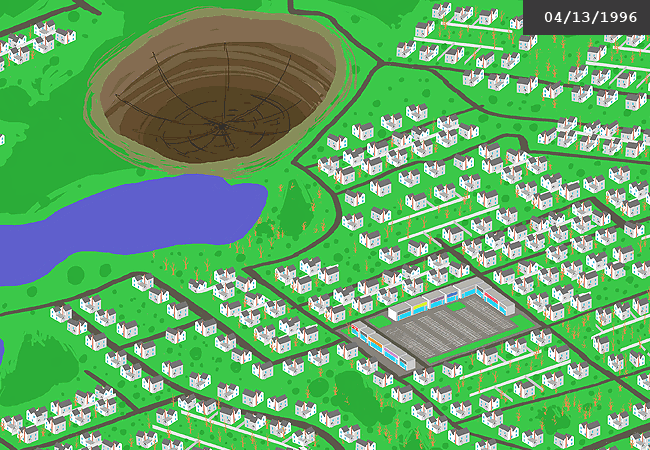 你又切換至一個顯示你的社區的畫面,日期是1996年四月13日,你出生的那一天。