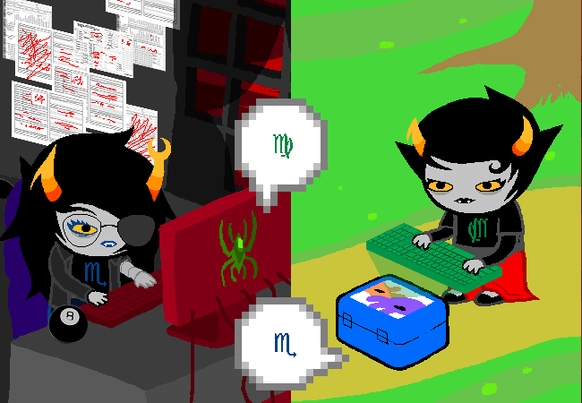 GA: 而Karkat的觀點是源自於他打從心底否認對事件的認知因而將之裁製成他自身的憤憤不平