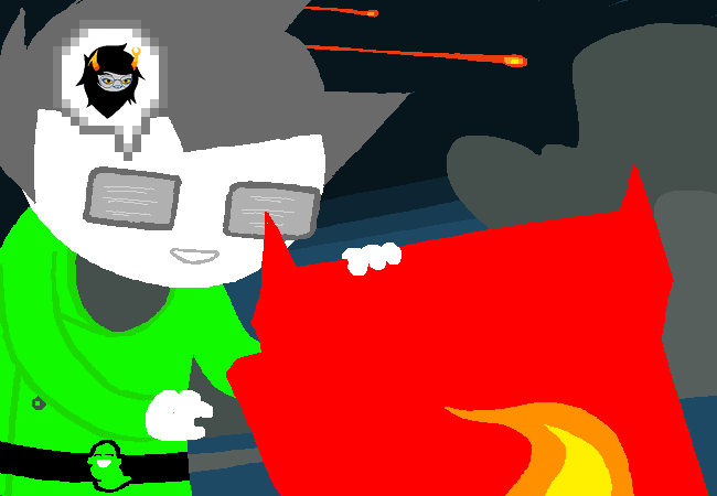EB: 我想它發生了一些事情,然後就爆炸了,然後jade的夢人格死了,然後我就在一個長得像棋盤的地方四處晃晃,那個有個超巨大的隕石坑,還有一堆一堆死掉的黑色人和白色人。
