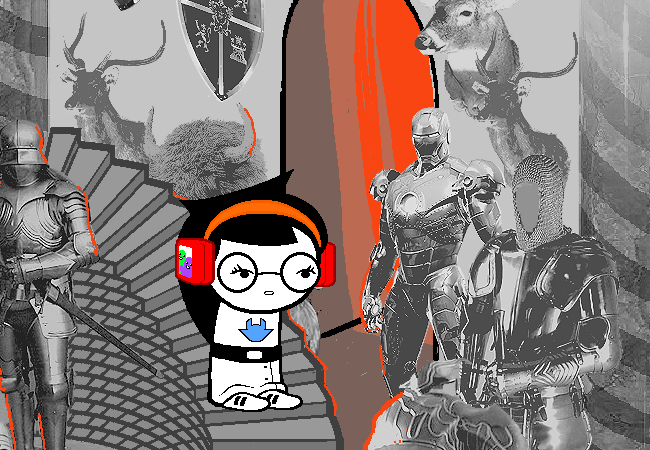 你走到其中一座樓梯間小心翼翼的描摹那件盔甲,你偷偷好奇你爺爺在他年輕時會不會其實就是鋼鐵人,這就解釋了很多事情,包括為何這件盔甲會在這裡。