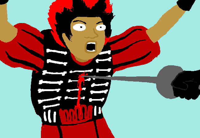 噢不!Rufio被他的殘酷仇敵-虎克船長貫穿胸膛殺害了!