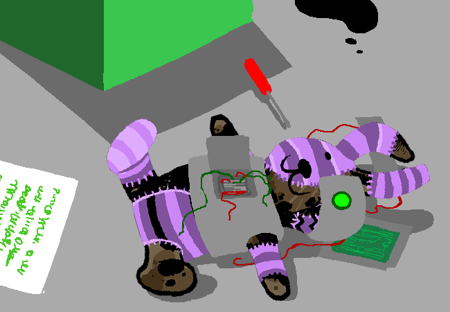 百分之百這會是個甜美的禮物,讓你回想起自己從你外婆那繼承而來的一大堆老舊玩偶兔,當然,你如今正在和她合作完成這包裹,時間循環老讓你頭昏腦脹,更別提你總懷疑這可能根本就是同一隻兔子,首先是Jade在過去20世紀的某個時間點送給John這隻機械兔,隨後又被退還給了Jade...不知怎的?接著她...呃...移除了所有機器的部分,然後擺到自己變成了一個老女人,並且把它交給你?你猜中途大概還經歷過一些更瘋狂的事,比方這整個項目最初開始的時間點,Jade告訴過你這隻小機械玩偶兔(你喜歡稱他叫泰瑞·奇瑟),將會救John一命!到時他會坐在某種像西洋棋盤的戰場上,穿著黃色的睡衣,閱讀這封信,然後喀蹦!奇瑟跳出來救場。所以你相當嚴肅地看待製作這禮物的責任,這幾年來都是。