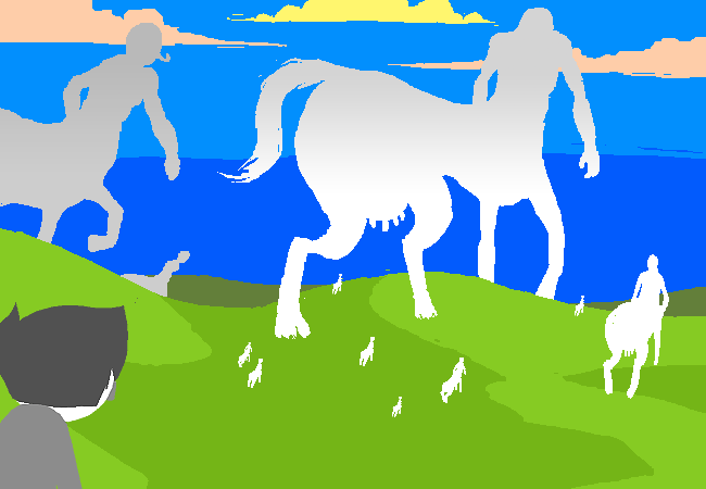 看來今天半人馬群是傾巢而出了,你最好小心點別走到牠們下面,否則可能會面臨極端的危險,比方掉落的糞便,或者是馬奶。