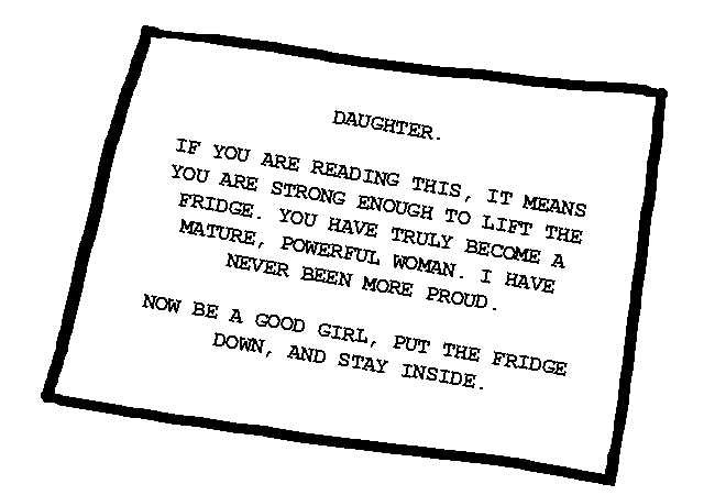 (如果你讀到了這個,表示你已經夠強壯可以抬起冰箱了。你已經成為了真正成熟且強大的女人。這是最我以你為榮的時刻。)