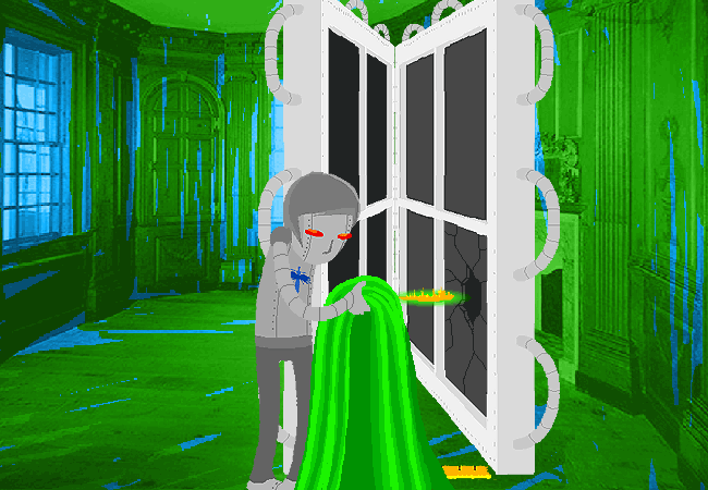 請不要注意到布簾子後面的男人,另外,也請不要注意到這個被祖母綠色油漆塗得亂七八糟的地方發生的任何事,謝謝。