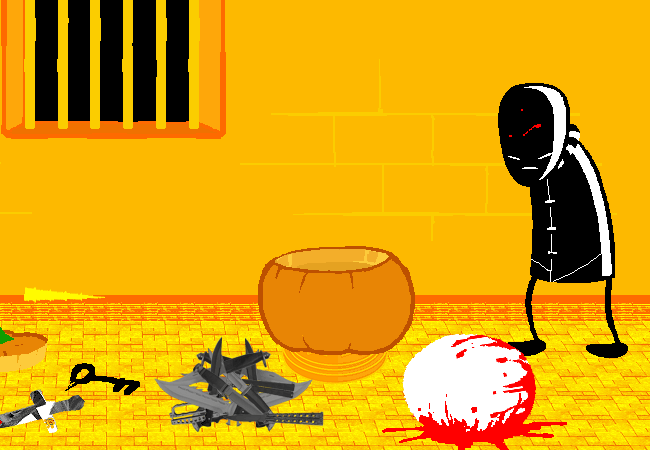 你用你值得信賴的刀子中最值得信賴的一把切下守衛的頭,並準備填進空南瓜中。