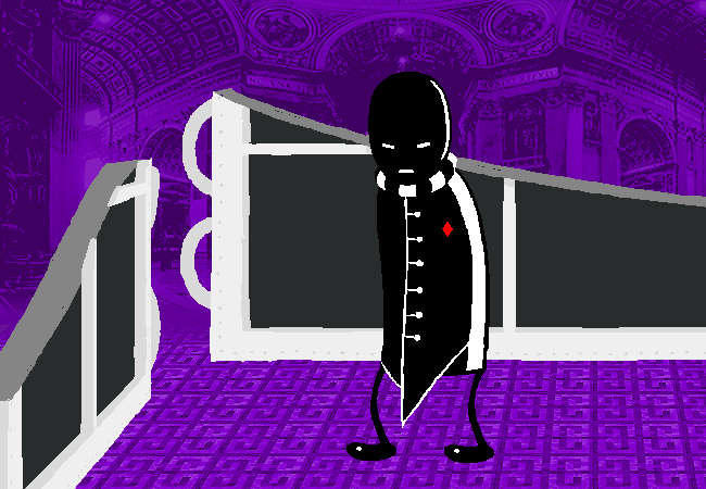 你沒辦法。那小子現在正在哥德式的迂迴建築中亂忙著呢。他在飛扶壁和一些紫色尖東西的深處鑽洞,甚至還跑到老大的警戒室裡稍做停留,然後砍斷了所有的