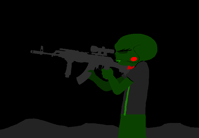 你從你的機關槍的瞄準鏡中望向你以前的牢房。你真的不應該在拿槍的時候這樣握著彈匣的,但隨便啦。