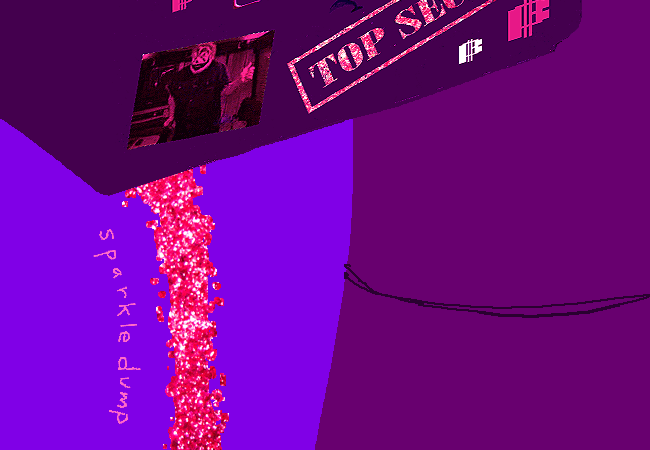 噢,太好了。一堆豐厚的亮粉從文件裡灑了出來。妳最近絕對是被古怪外星女人們的閃亮粉末纏住了,這到底是怎麼回事?