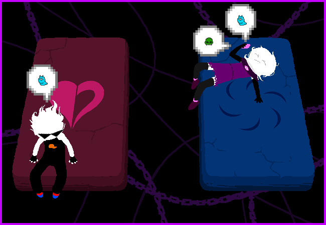 ![]() 醺靈懷舊tipsyGnostalgic [TG] 開始敲 勇氣探長gutsyGumshoe [GG] TG: 嗨janey TG: 感覺怎樣姐妹 GG: 感覺自己是個垃圾。其他的都還好。 TG: 你自殺了嗎? GG: 還沒? TG: 好 TG: 還請先不要 TG: 我現在手上有張jake english自我厭惡劇場的後台遊覽票 TG: 然候我現在的狀態無法承受他的哀鳴的全力衝擊但我是他唯一能說話的對象所以 TG: 需要一點來自死黨的支持 GG: 他說了什麼? TG: 他想要我轉達給你的道歉 TG: 因為他覺得他沒有足夠的勇氣告訴離他的石頭床十英尺遠的你而且他覺得你在生他的氣 GG: 啊老天。 GG: 我不想這樣做。 TG: 做什麼 GG: 讓接下來的談話充滿一系列「告訴他我說什麼」的尷尬道歉 TG: 好 TG: 很合理的回答 TG: 我應該說什麼 GG: 告訴他我說我們之後再談。 GG: 像是,等我們死了之後。 TG: 行 TG: 我大概不會說最後那部分但行 GG: 那邊怎麼樣? TG: 還好 TG: 死掉的部份沒多少進度 TG: dirk看起來不太想要用他的動漫武士刀刺我... TG: 說真的等待自己被兄弟殺死以及/或自我了結的感覺比你想像得還要尷尬再加上算是嗑藥的影響?? TG: 特別是這頭疼哇 TG: jane這太蠢了 GG: 是啊。說來令人震驚,但我不認為我們被糖果熱昏頭的人格有好好想思考過這件事。 TG: 真的惡作劇模式爛透了 認同請轉發 TG: 嘿jane你知道我最傷心的是什麼嗎 GG: 嗯? TG: fefeta的爆炸 GG: 是啊。 :( TG: 為什麼她要像那樣死第二次 TG: 她是我的朋友而且那麼甜蜜完美 TG: 她總是說著她的兩位troll女士的生前最有趣的事讓我振奮起來 TG: 我是被詛咒了或者怎麼了嗎jane? GG: 詛咒了? TG: 是 TG: 像是 TG: 我總是不小心殺死我的貓 TG: 或者我的半貓女孩 TG: 唔嗯嗯嗯 TG: 同時也有一部分是海洋公主的外星幽靈女孩 TG: 不知道也許這樣順著推論下來沒什麼連貫性 TG: jane TG: 等我們神化後你想幫我為她舉行一場葬禮嗎 GG: 當然,Roxy。 TG: 我很想這樣做 TG: 我一直想參加一場葬禮 TG: 那很奇怪嗎?也許很奇怪吧我不知道 TG: 我不是指那種非常病態或者哥特式的葬禮我只是覺得那是個懷念她的好方法 TG: 我從來沒有為費格理須辦過一個不過我應該要的 TG: 幹jake又在敲我馬上回來