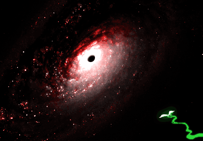 她懷著增長的執念追趕他諸多恆星周,直到有一天痕跡在黑洞旁消失了。智天使經常尋找黑洞做為他們交配儀式的場地,但八只是一般的黑洞,它需要以前是顆恆星,並有一顆行星在周圍環繞。那行星便是如今正在鬧事的智天使的家。我們的男主角回到了他的孵化地來進行交配,那個地點現在當然已經被一顆赫然巨大的黑洞給佔據了。